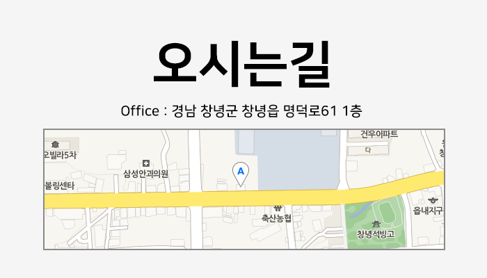 주소 : (50317) 경남 창녕군 창녕읍 명덕로 61 1층